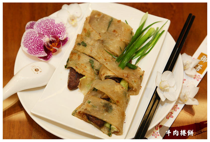 牛肉捲餅-捲餅除了厚實的蔥餅皮和牛肉塊之外,搭配小黃瓜、蔥段、自製醬,鹹度適中,非常推薦大家點來搭配主食一同享用。