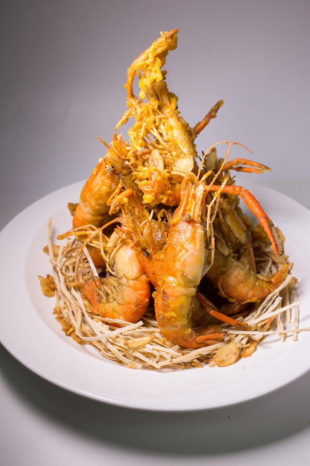 將泰國蝦裹上蛋黃粉、以高溫油炸,完整鎖住蝦肉鮮美,大人小孩都愛的鹹酥蝦料理。