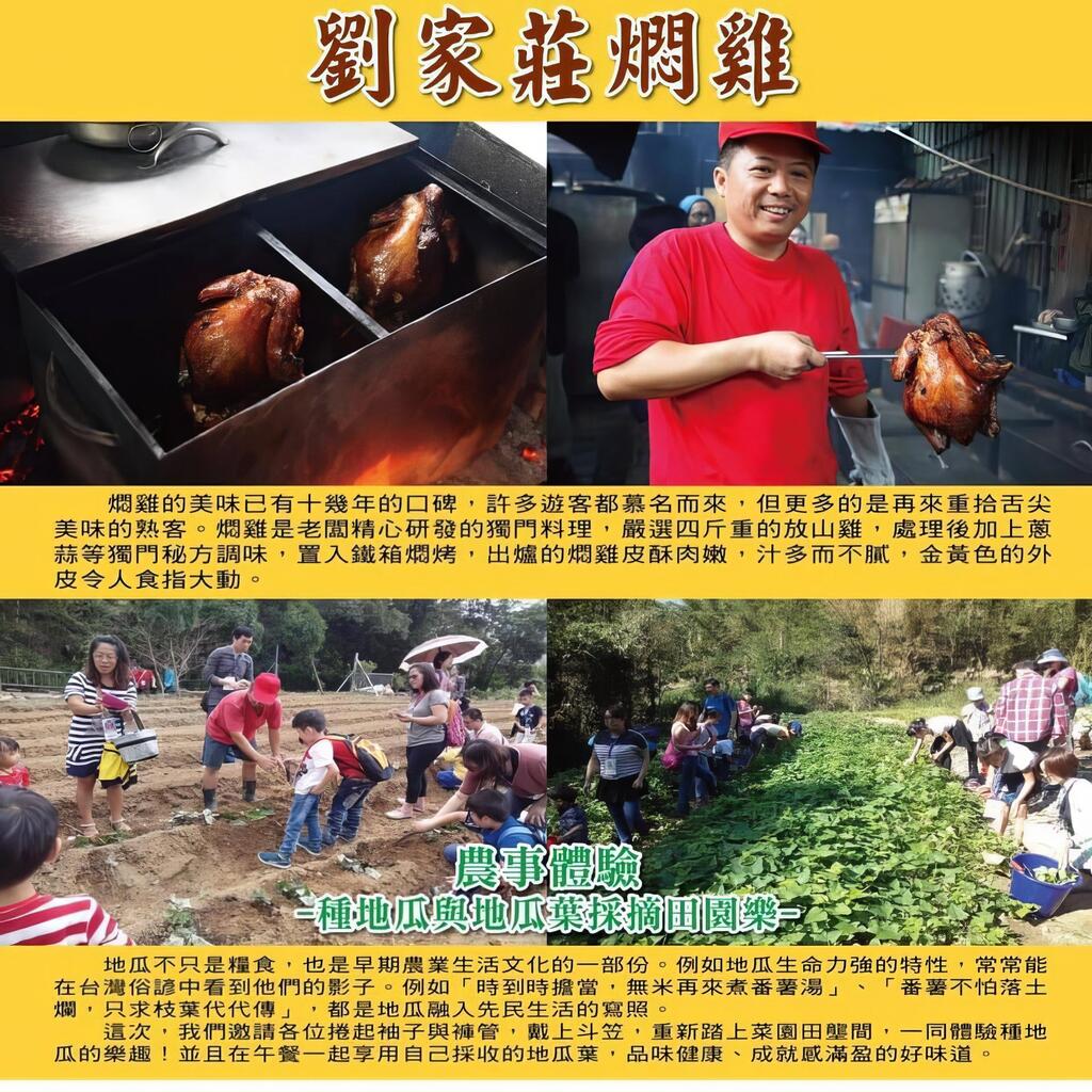 除了美味燜雞,這裡的農事體驗也是相當豐富,像是以地瓜為主題的農事體驗,可以讓大人、小孩踩進田裡,感受土地的溫度,了解到地瓜不僅是糧食,同時也農村裡生活的一環,動手採摘地瓜、地瓜葉,從而瞭解平日裡餐桌上的飲食,他原先的樣貌,進而豐富作物生長的小知識,成為最深刻的學習體驗。