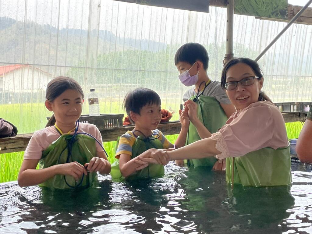 來到中正湖畔「李氏野蓮家」,近三十年經驗的老闆李煥生為我們揭開野蓮生長採收的秘密。種植野蓮需乾淨的水質,從放水抓魚清整水池,一直到整地、播苗、注水、採收、清洗等一連串流程,每個步驟都需細心照料。除了增長見聞,還能換上青蛙裝,實際走進水池中體驗洗野蓮。在李大哥的指導下,剪除根部、挑掉枯枝,抓起一大把野蓮左右擺動清除泥沙,翠綠細長的野蓮隨水波搖曳蕩漾,柔美又療癒,但可別顧著玩水不認真洗,因為這把新鮮野蓮就是體驗活動的伴手禮呢!