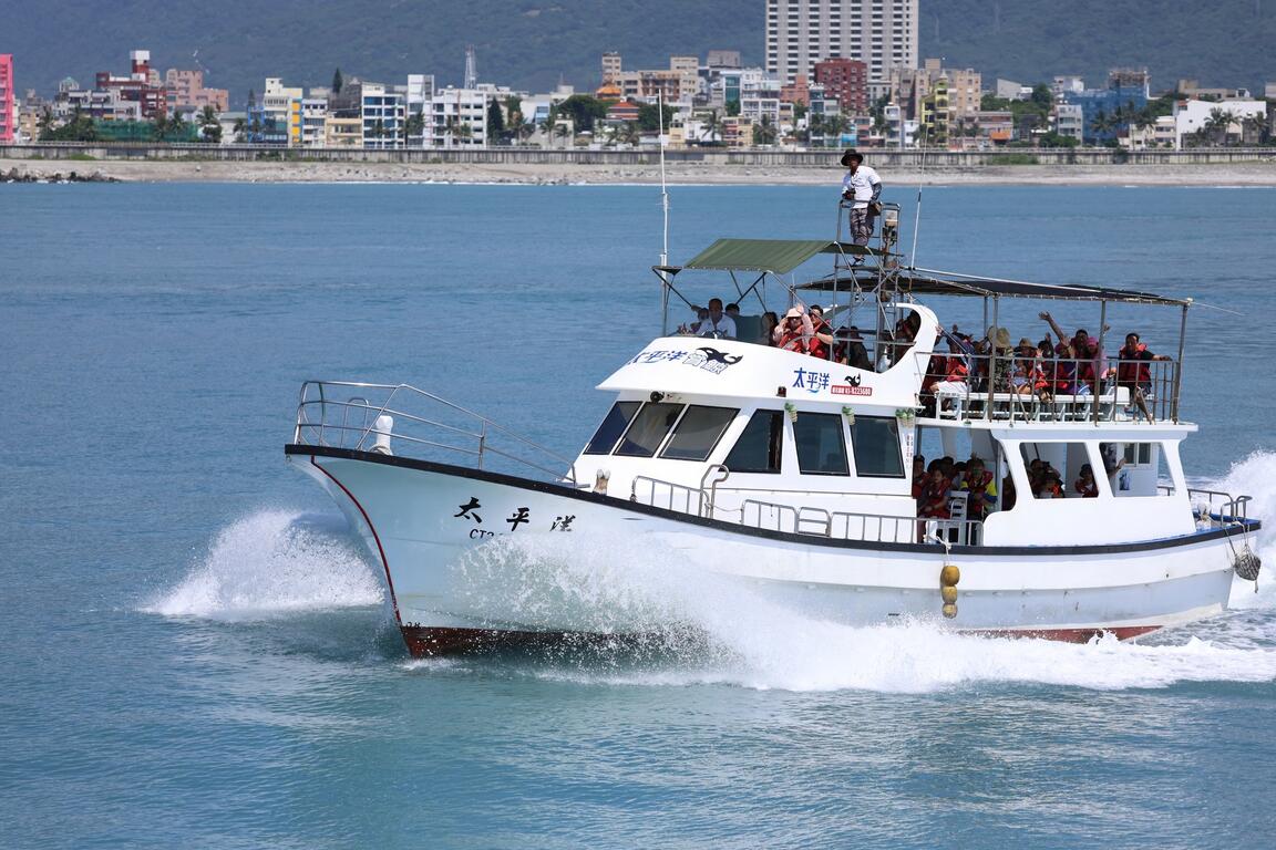 瀏覽碼頭景觀及海岸沿線美景眺望中央山脈高山林立→沿途賞鯨豚專業解說員解說生態並尋找鯨豚行蹤→欣賞鯨豚海上跳躍潛遊嬉戲令人讚嘆不已→返碼頭結束賞鯨之旅大約1.5-2小時返回。