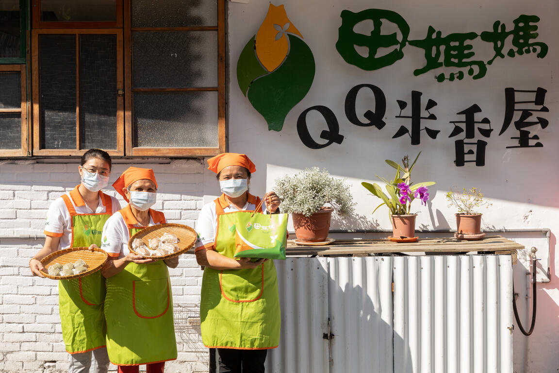 「在地人吃的是美味,遊客則吃的是家鄉味」由黃謝翠領軍的祖母級田媽媽班,用紮實、深厚、道地的精湛手藝,讓上門的顧客回訪、回購率都超高,看到這群田媽媽忙碌穿梭在店裡的身影,熱情的招呼聲,用心製作充滿古味的米食的心意,就是田媽媽的最佳代言人。逢年過節必備的蒸發粿、年糕,端午節的肉粽、中秋節的麻糬、農曆七月中元普渡常見的艾草粿、油飯、糯米腸、蘿蔔糕道道都是獨家保證的好風味,「QQ米香屋」堅持著傳統米食點心的Q軟和米香,也蔓延著那股彷彿復刻自己阿嬤親手煮出的「家鄉味」。