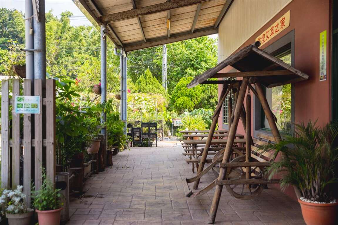 艾馨園外觀艾草陶盤蝦裝盤點綴艾馨園悠哉休憩空間艾草周邊伴手禮