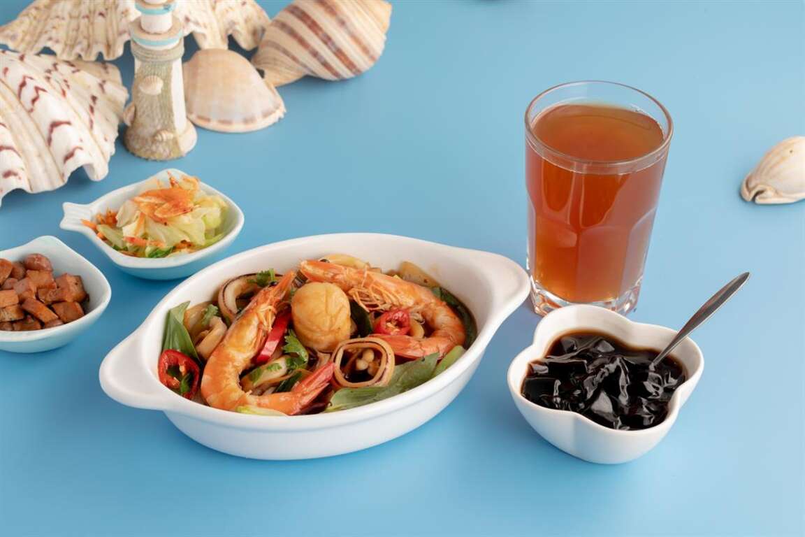 「海岸風情」套餐內容以當地每日現捕海鮮為主,夏天有小卷、透抽,冬天有烏魚,一年四季供應鯖魚、白鯧,來到這裡別忘了點上店內的招牌餐點「綜合海鮮套餐」、「烤鯖魚套餐」,不吃海鮮的朋友可以點「宮保雞丁套餐」,套餐配菜更多達五種,均衡的營養健康,吃得到媽媽細心料理的溫暖。飯後還有以鯛魚為造型的「紅豆麻糬鯛魚燒」,多元化的選擇讓大家都能滿足口腹之慾。