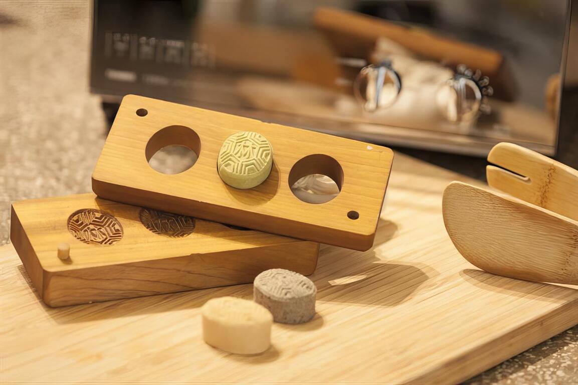 要將麻芛融入進糕點中,最麻煩的是去除苦味這道程序,以手工去梗留葉、再在畚箕上不斷搓揉、洗淨苦水後才可以使用。富美媽媽研究多時,在太陽餅的麥芽糖餡中加入乾燥打碎的麻芛粉,讓麥芽平衡了它的苦味,吃起來甜而不膩、不苦。