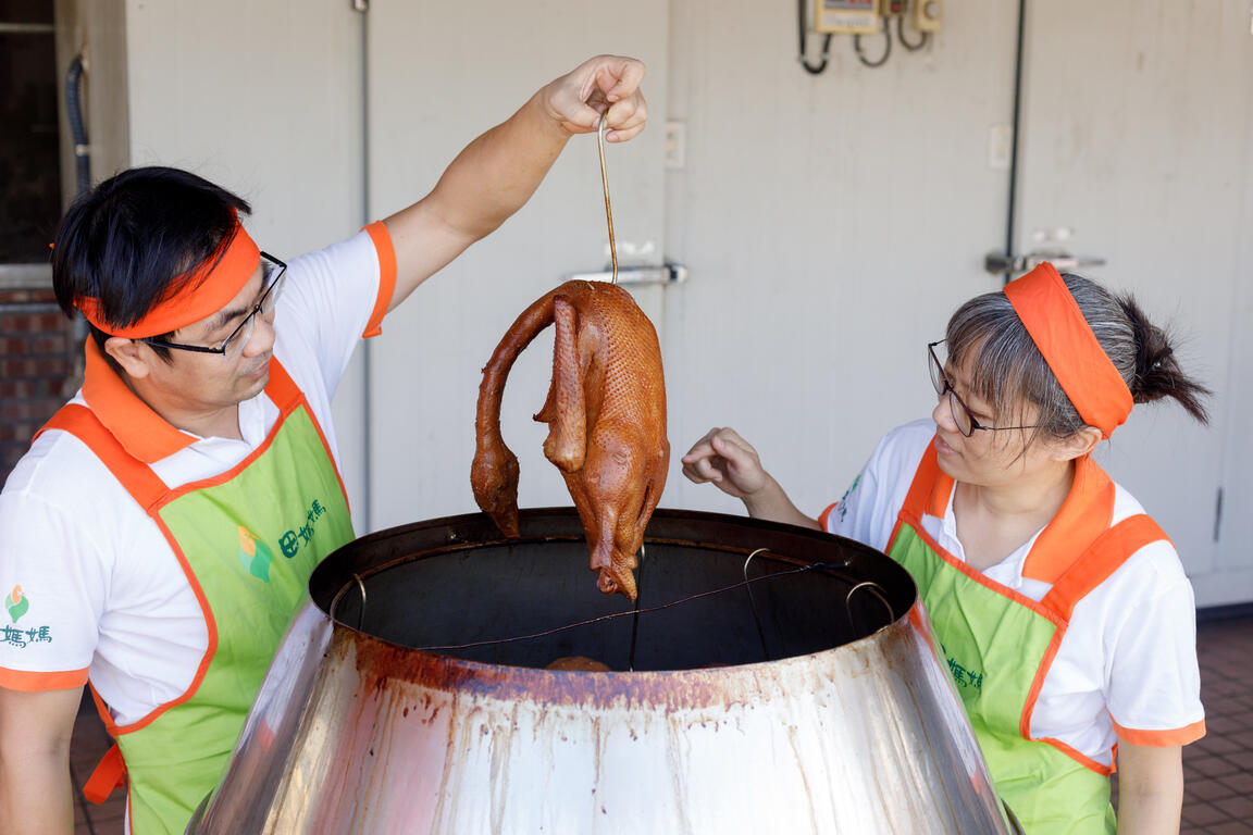 鵝肉香腸是將鵝肉與豬肉以特定的比例調配製作而成,每一口都能感受到鵝肉的香氣,加上豬肉的咬勁,口感豐富且層次鮮明,非常有特色!
