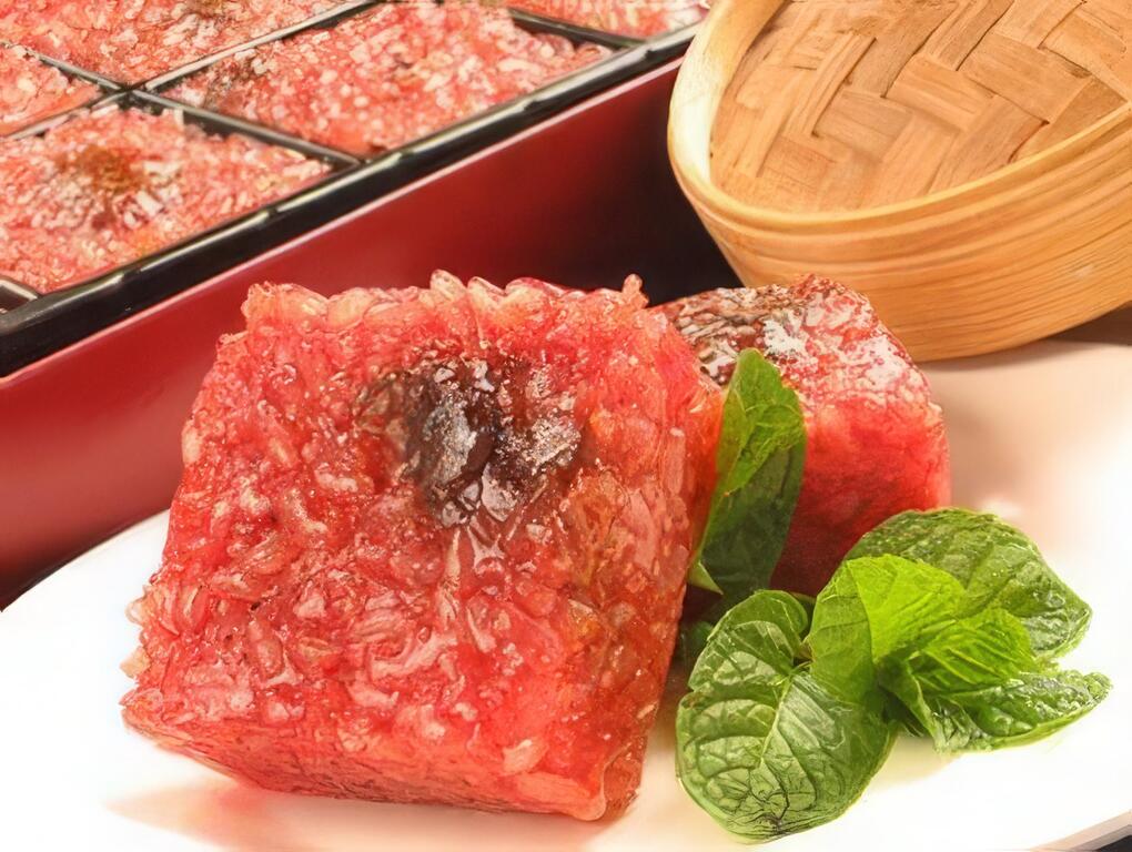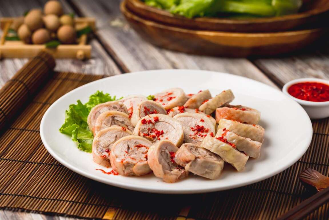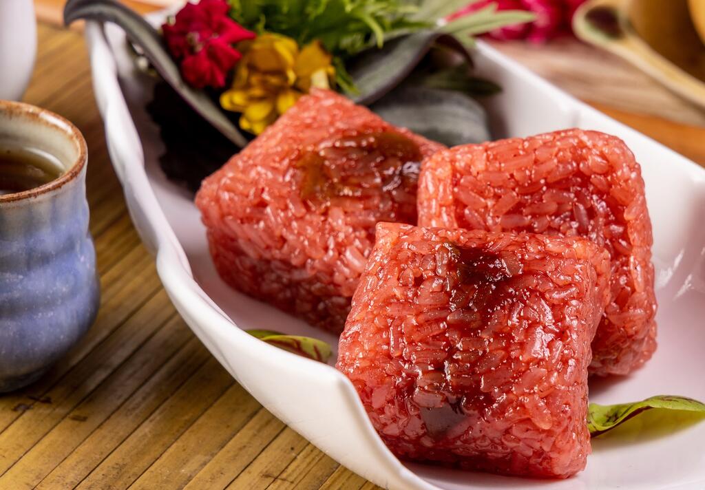 紅麴中富含益菌,美味又營養,散發微微酒香搭配雞肉捲,相當開胃。