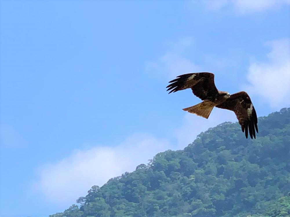 ▲天空中盤旋的黑鳶是鳳梨田最好的守衛者。(圖片來源:銘泉生態休閒農場)