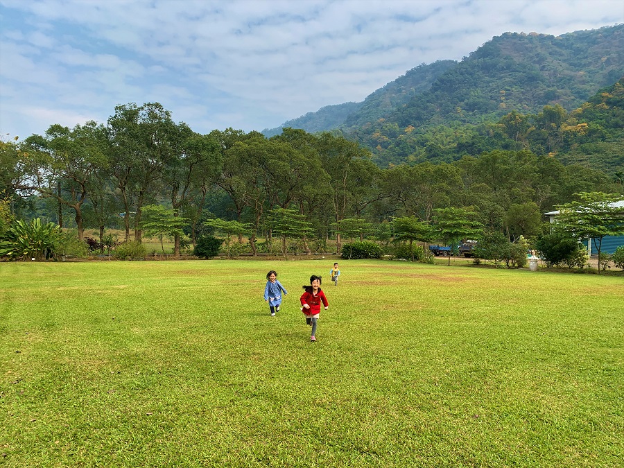 ▲農場裡的大片草皮讓孩子們能夠盡情跑跳