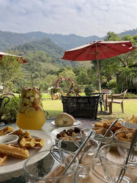 ▲園區提供各式咖啡輕食,一定要來一壺冰涼酸甜鳳梨水果冰茶。