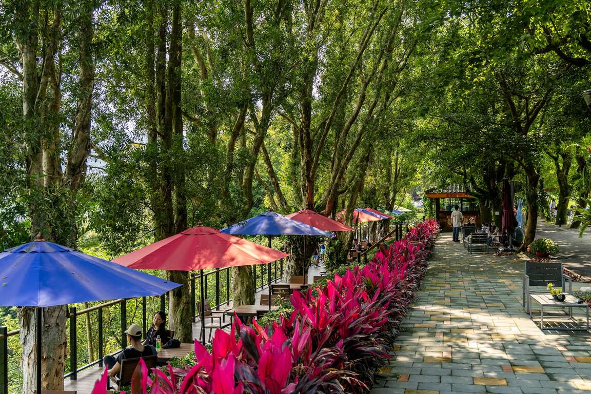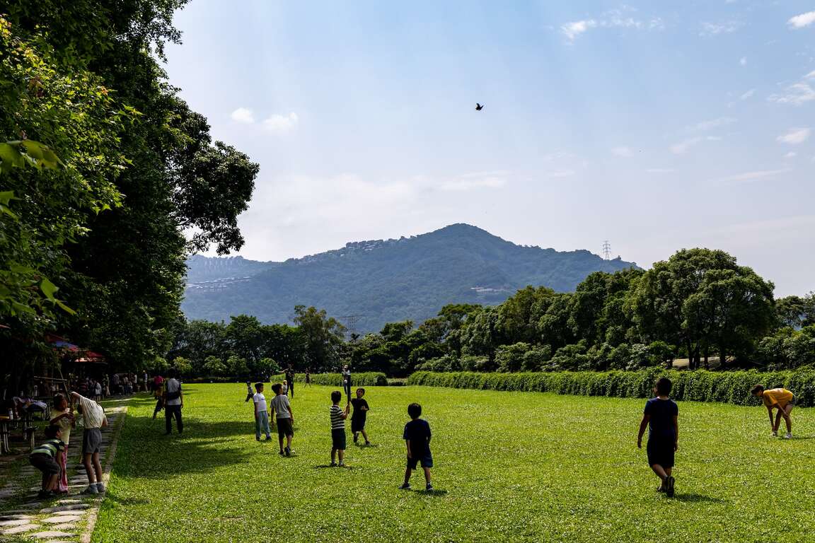半日遊體驗開始前,可先至遊客中心旁的草坪區遊玩,此場地是小朋友最愛的遊戲空間,打棒球、吹泡泡、踢足球,盡情玩耍。草坪區的四周廣設涼亭與鞦韆椅,亦設有餐廳提供餐食,看顧小孩的同時,家長們也能愜意的納涼、品嚐下午茶。
