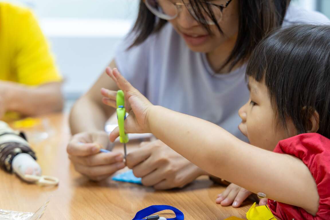 發揮創意剪黏出專屬圖樣的卡套、親子同心協力製做童玩「唧唧蟬鳴」,大功告成之時,一起甩動童玩,頓時整間教室成了夏蟬的演唱會現場,大朋友們甚至比小朋友還興奮呢!