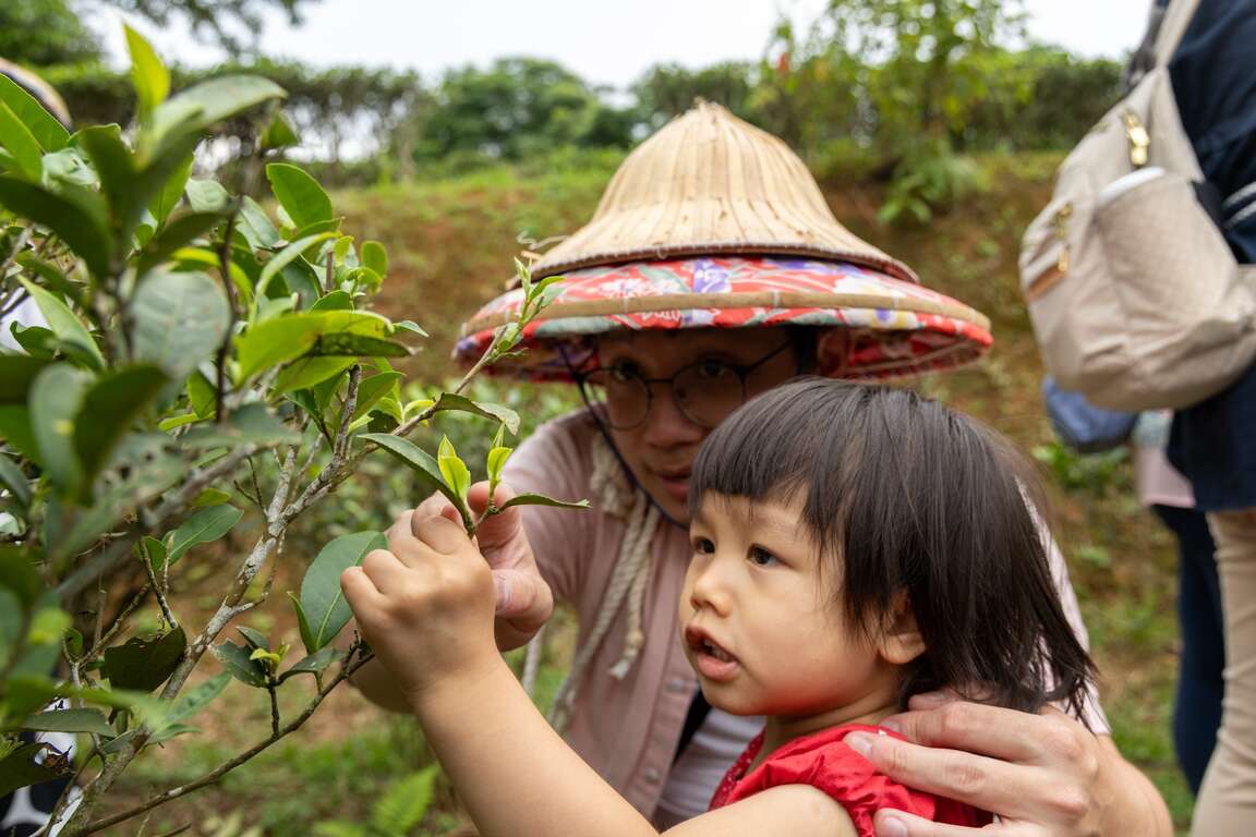 聽導覽老師講解臺灣茶的品種與特質,走入茶園後尋找「一心二葉」,摘取最嫩的新芽與兩片嫩葉,收入茶簍中帶回家,親手採收的茶葉往往最為甘甜。