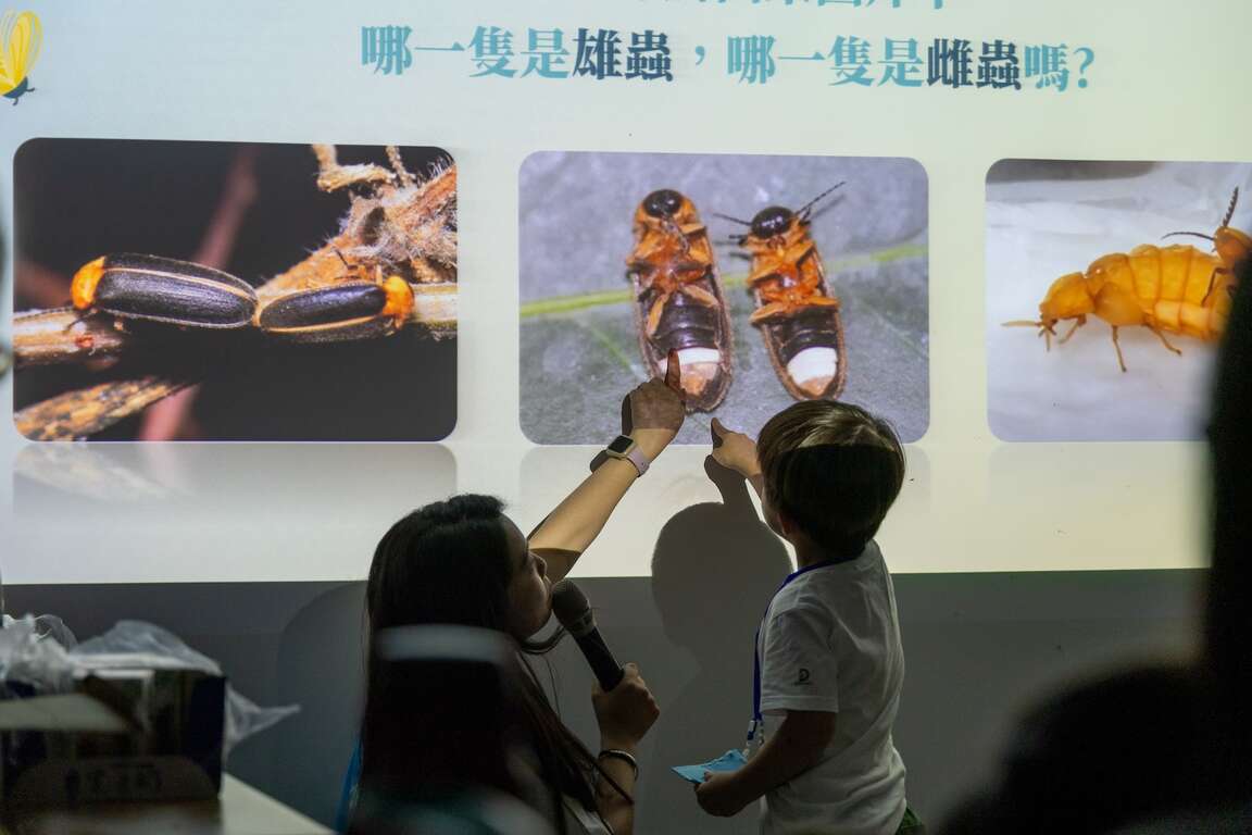天色逐漸轉暗,教室裡導覽員很用心的介紹螢火蟲生態與賞螢的注意事項,並現場開起百萬小學堂,小朋友們積極搶答,短短半小時,將文山農場內螢火蟲的種類、如何分辨螢火蟲的雌雄等諸多知識都完整吸收。