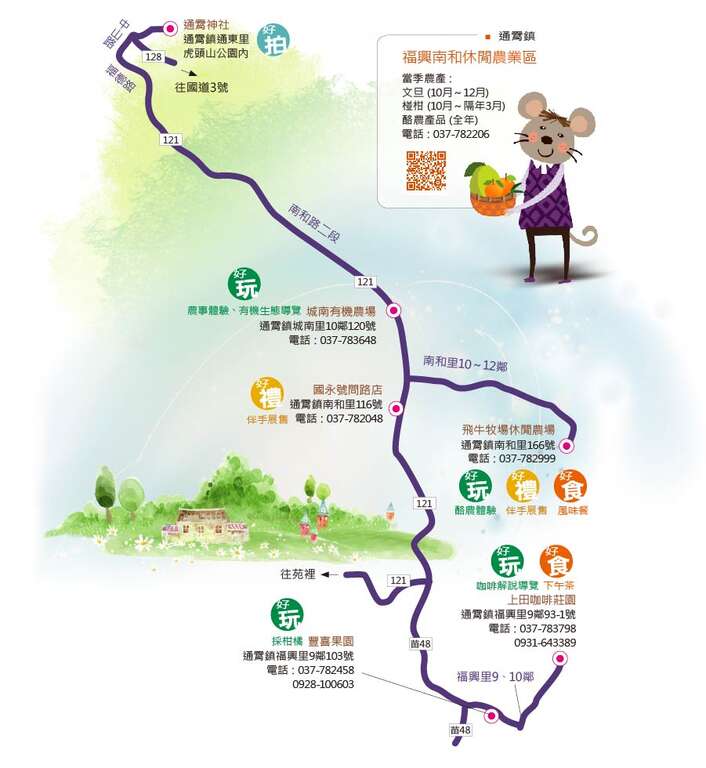 遊程重點:通霄神社➜城南有機農場➜國永號問路店➜飛牛牧場休閒農場➜豐喜果園➜上田咖啡莊園