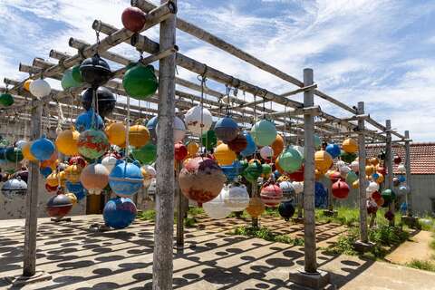 南寮社區以創意再生海廢,在古宅聚落中打造出繽紛的「浮球秘境」。不僅凝縮了澎湖漁業的記憶,更是循環利用的典範,為南寮人氣第一的打卡地標。