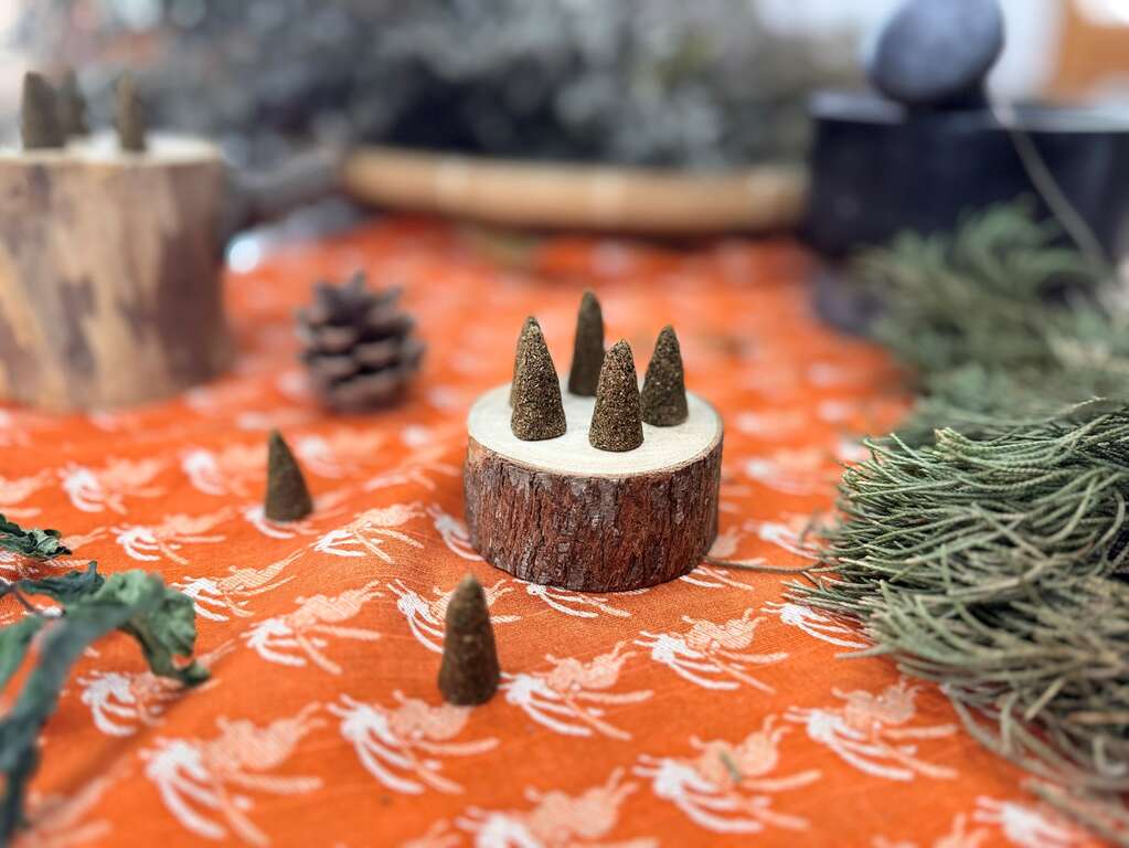 草山好土氣舉辦許多主題活動,其中「島嶼的祝福 :季節的香氣手作錐香」是一場五感沉浸的香氣實驗,首先在導覽中認識巫雲山莊的歷史,參觀「草山調適學」展覽,了解居民如何用發酵、醃漬等手法,面對陽明山的山氣與四季變化。隨後,選用自家農場種植的香草,用手指揉捏、塑型成錐香。不只是創造氣味,更像是把陽明山的味道封存在香錐中,成為獨一無二的「山林備忘錄」。