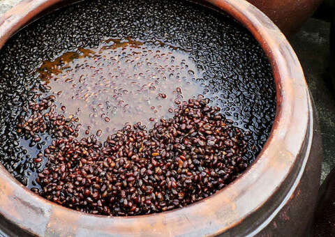 告別菁寮老街的純樸風景,來到上茄苳的永興醬油食品廠,一探百年釀造的職人堅持。五代傳承的手藝,從嚴選黑豆開始,以傳統陶缸古法純釀,精準掌握製麴關鍵,細心呵護四至六個月自然發酵,無人工添加物修飾色澤與風味,呈現自然透亮的琥珀色與層次豐富的豆香甘醇,展現時間淬鍊的真實滋味。