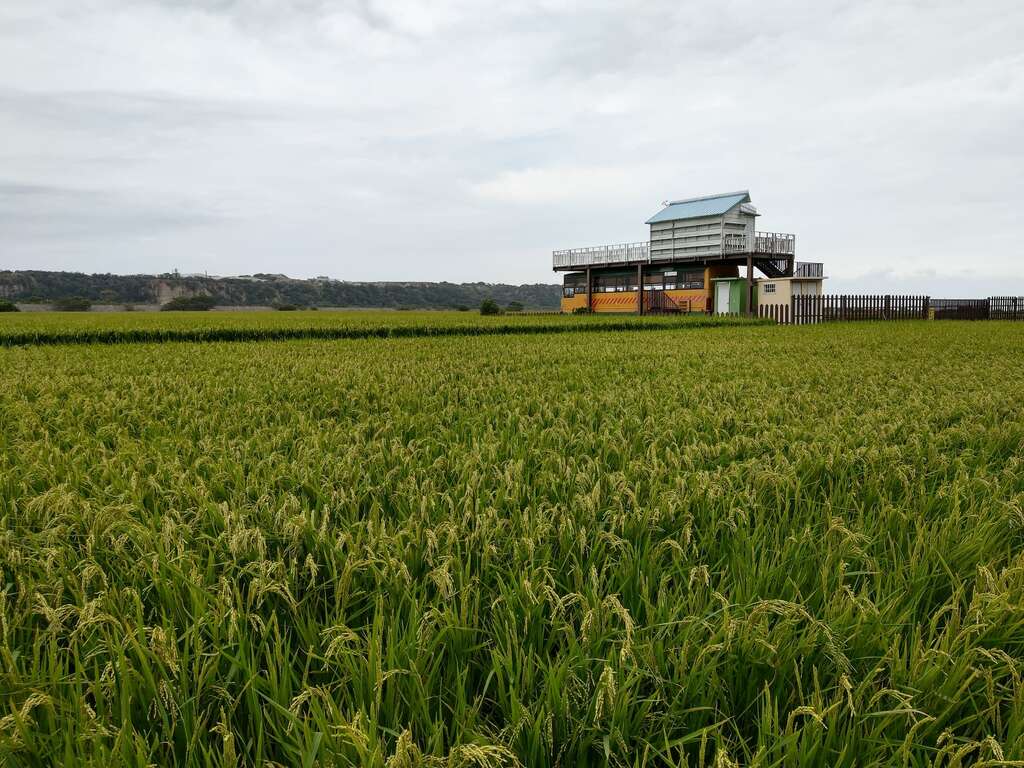 圖為10月接近金色稻浪的外埔忘憂谷景色, 3~4月前往可見綠油油的稻田
