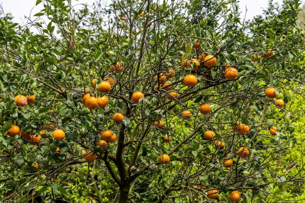老大份農場不僅以多樣柑橘聞名,園區內更種滿杜鵑、茶花、桂花、銀杏與竹筍,也栽培香蕉、芭樂、蓮霧、紅龍果、枇杷、木瓜、百香果與茶樹,並飼養雞與魚,是橫山山林中的一處桃花源。