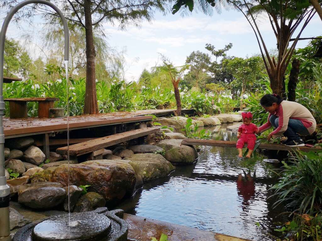 踏進農場,迎面而來的是孩子們的笑聲和活力身影。農場中最受歡迎的水上盪鞦韆設在湧泉之上,讓清涼的溪水在腳下流淌,既消暑又充滿童趣。還記得那些童年時代的小溪樂趣嗎?這裡還特別設有古早味汲水器,甚至能親手撈魚蝦,讓孩子體驗純真的自然樂趣,也讓大人找回久違的回憶。